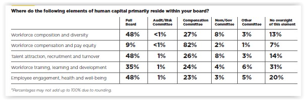 Board oversight of HCM issues is allocated as follows: