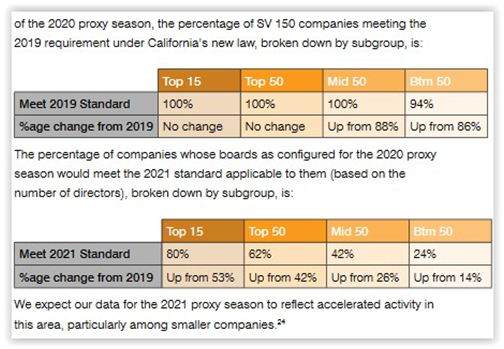 We reported on California's 2020 board diversity (race, ethnicity, and LGBT) law here.