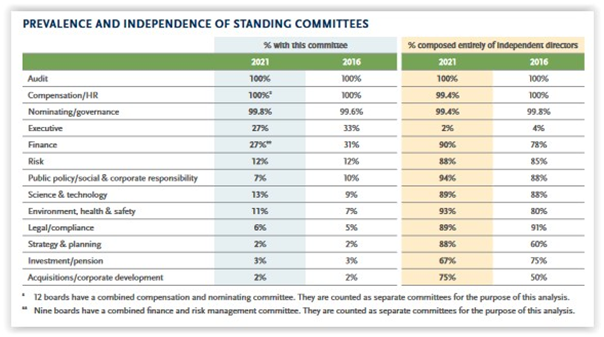 Always a keen topic of interest, here is the breakdown on board committee structures in 2021 as compared to 2016: