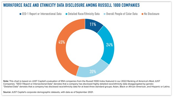 See JUST Capital’s “Companies Disclosing the Highest Level of Workforce Diversity Data – EEO-1 Report – Saw Higher 2021 Returns” and additional resources on our Human Capital/Workforce Management page.