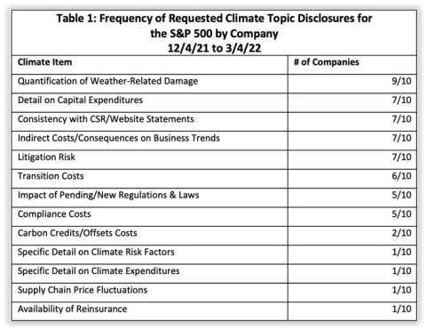 One-Third of S&P 500 Form 10-K Comment Letters Climate-Focused