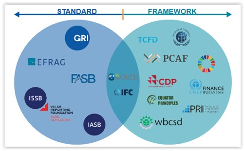 GRI’s “ESG standards, frameworks and everything in between” is noteworthy for its explanation of the differences between sustainability “standards” and “frameworks,” which are frequently used interchangeably (inaccurately). The below graphic shows where many of the most commonly referenced acronyms are situated.