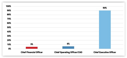 Of the relatively few companies without a GC/CLO (12%), nearly 80% were small companies (less than $500 million revenue). For the companies that have them, GCs/CLOs overwhelmingly report to the CEO. The relatively few GCs/CLOs that don’t report to the CEO report to the CAO or CFO and tend to be employed with private and/or smaller companies.