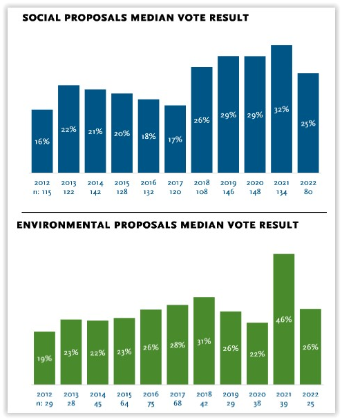 2022 Environmental & Social Proposals Garnering Less Support