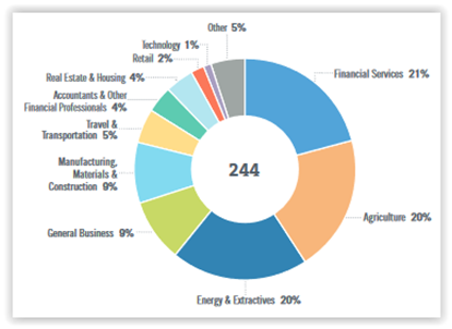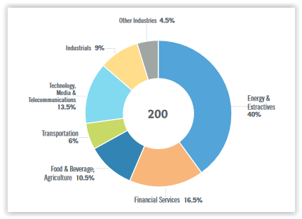 - Corporate submissions were heavily represented by Energy & Extractives industry companies (40%), with the Financial Services and TMT sectors trailing at 16.5% and 13.5%, respectively: