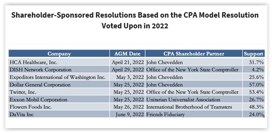 These new proposals constitute a subset of the 25 proposals filed thus far by CPA’s shareholder partners for the 2023 proxy season.