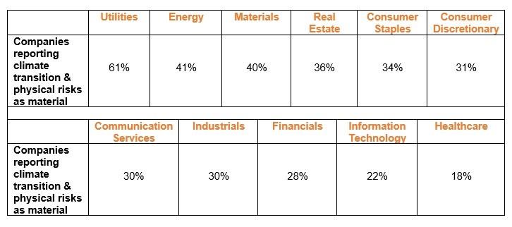 Notably, based on the 2023 S&P Global Corporate Sustainability Assessment, while some companies in every sector view climate transition and physical risks as material