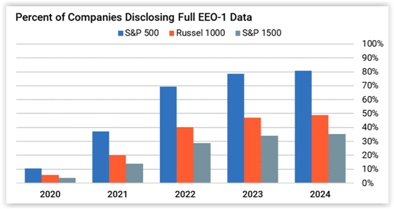 DiverseIQ reported on the rise in EEO-1 proxy disclosure among the S&P 500, Russell 1000, and S&P 1500.