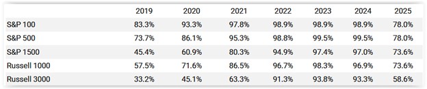 DiverseIQ reported on board diversity disclosure trends based on its review of the more than 2,460 S&P 1500 and Russell 3000 (R3000) proxy statements filed calendar year-to-date as of May 2.