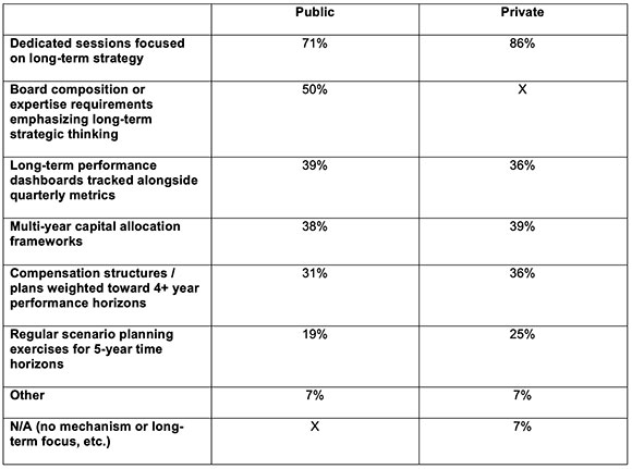Corporate Board Member’s report: “Shareholder Pressure, AI And Economic Volatility Erode Long-Term Planning, Survey Finds,” based on a November 2025 survey of public and private company CEOs and directors, reveals the types of governance mechanisms public and private companies use to maintain focus on long-term strategic objectives in the context of a seemingly growing and limitless number of short-term pressures.