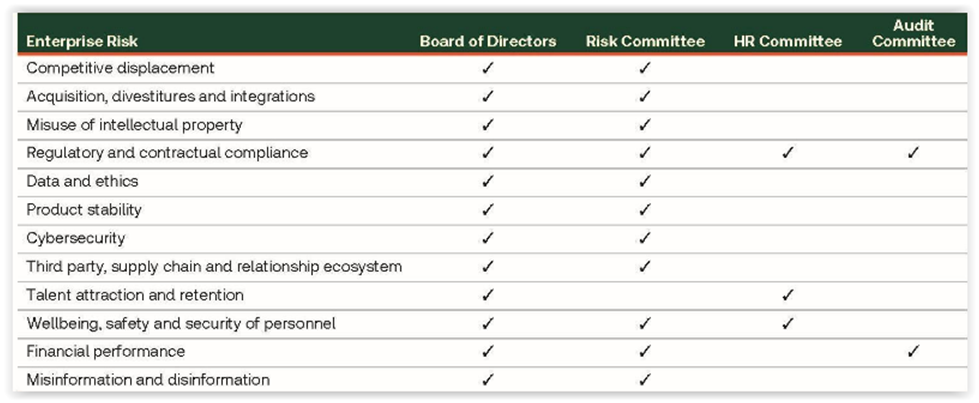 The table below reflects oversight responsibilities for each of the 2024 enterprise risks listed.