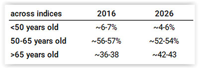 By age group, the data reflect a much more noticeable shift toward older directors across indices, with the over-65 group representing 42% - 43% of all directors today vs. 36% - 38% in 2016. Comparatively, the percentage of directors under 50 has declined from 6% - 7% in 2016 to 4% - 6% today.