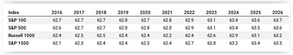 The data in this piece: “Boards Talk About Diversity. Age Is the Exception” from PeopleReturn (formerly DiversIQ) depicts a slow but steady increase in average director ages over the past decade across the S&P 100, S&P 500, Russell 1000, and S&P 1500 indices:
