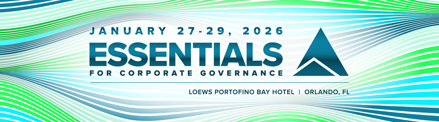 The Society for Corporate Governance is once again hosting our popular Essentials conference. With a program designed to provide a comprehensive learning experience loaded with practical knowledge and insights, attendees will leave the conference equipped with the essentials for effective corporate governance.